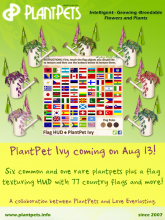 Six common and one rare ivy plantpets were released last Friday! Each seed purchased in the PlantPets Main Store comes with a flag texturing HUD with 77 country flags and more! This is a collaboration with Love Everlasting where you will also be able to get the HUD.