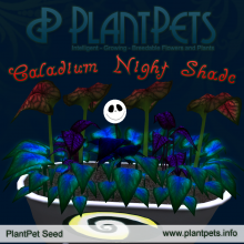 Today at 13:30 SLT we release the long awaited limited edition plantpet Caladium *Night Shade*. Together with it we also release the PlantPets Mission Fall 2014. At the release we are holding a raffle from 13:30 to 15:00 SLT in the PlantPets Main Store. To enter the raffle an avatar just needs to stay on the ground floor in the store. The raffle will give a Halloween-themed plantpet seed to a randomly picked avatar every 10 min.