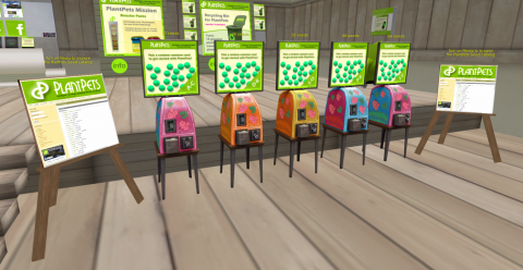 We installed 5 gacha machines in which we alphabetically distributed all (currently) 245 common non-vintage PlantPets seeds. One play is 120L. This price was set after consultations with many PlantPets breeders to ensure a healthy breeders' market and at the same time to be reasonable for people who get started with PlantPets and go to the main store to get their first seed. Next to the five gacha machines there are also two easels on which one can browse the PlantPets seed catalog on the Web.
