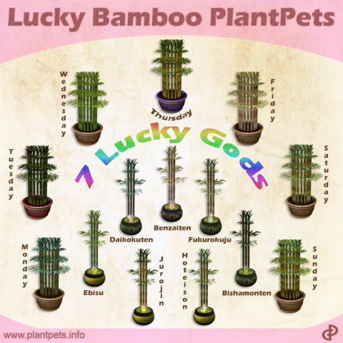 Today we release 14 new lucky bamboo plants. These are 7 common bamboo plants named after the days of the week and 7 rare ones named after the Seven Lucky Gods of good fortune in Japanese mythology and folklore. They are: